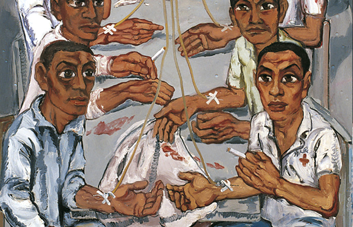 再看曾梵志早期的油画作品:《协和医院系列之三》,2005年香港佳士得春拍,这幅画114万港币,曾梵志刚刚进入百万,2007年另一幅协和医院三联画在英国拍了246.4英镑,2年时间进入千万,2013年秋拍里曾梵志已经拍出两张过亿作品了。